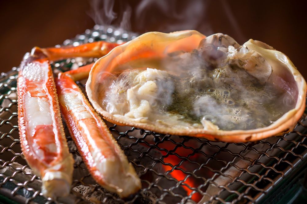 瑠璃浜では、津居山・柴山港から直送された新鮮なブランド蟹をたっぷり堪能できるカニプランがスタートしています!